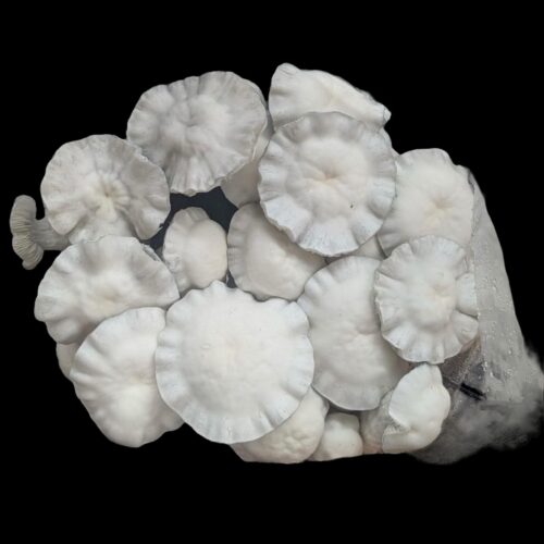 These spores are known to produce incredibly aggressive results underneath the microscope. The spores themselves come from pure white mushrooms. They tend to have very thick stems that are dense with mycelium. The caps are also very large and fleshy. Furthermore, the edges of the caps tend to ruffle and flip outward, subsequently exposing the gills.