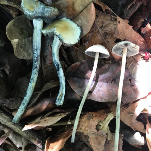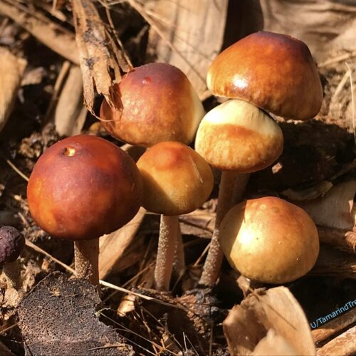 Panaeolus cyanescens is a mushroom species that goes by many names. Some of these include, “Copelandia cyanescens”,“Pan Cyans”, and “Blue Meanies” (make sure not to confuse it with cubensis “Blue Meanies” ). Additionally, they are genetically similar to the species Panaeolus tropicalis.